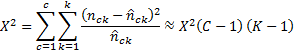 In other words, the CHAID algorithm first finds the differences between each sample and the other samples to produce a tree. The pruning of the tree is done by finding the differences (Chattamvelli, 2011). In CHAID trees, the homogeneity of the groups that generated the tree is evaluated by a Bonferroni corrected P-value obtained from the chi-square statistic applied to two-way classification tables with K splits and C classes for each tree node (Maroco et al., 2011):
