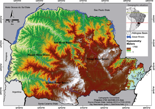 In regions with transitional climates, such as areas of contact between the tropics and subtropics, climate variability has been shown to be extremely dynamic, and, thus, its impacts have become more notable, resulting in conditions of lesser predictability (Sant’Anna Neto, 1999). This complexity combined with disturbances of tropical (low latitudes) and extratropical (high latitudes) atmospheric systems, where rainfall is the main element of climate variability, is also observed in the climatic dynamics of Paraná State, located in southern Brazil.