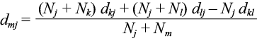 (2)where dmj is distance between groups m and j; m is the merged cluster consisting of clusters k and l, with m = (k, i); dkj is the distance between clusters k and j; dlj is the distance between groups l and j; dkl is the distance between clusters k and l; Nj is the number of variables in grouping j; Nk is the number of variables in grouping k; Nl is the number of variables in cluster l, and Nm is the number of variables in the cluster m.