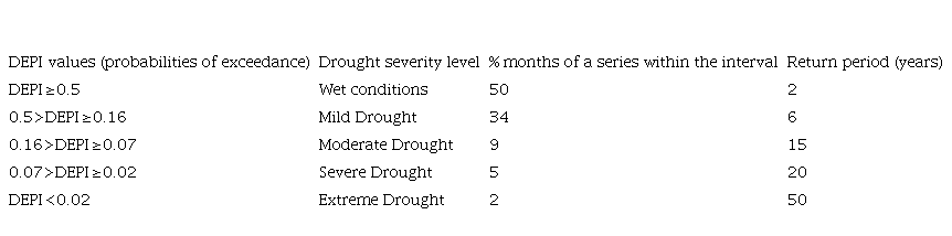The main contribution of the DEPI would be the accurate establishment of drought duration and associated cumulative severity, two of the most difficult and less successful aspects to establish in the field of drought indices, particularly the simpler and less data-demanding ones.