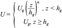 (6)Considering that the hurricane boundary layer may deviate much from non-hurricane boundary layer, Vickery et al. (2009) proposed an empirical wind profile model based on hurricane wind profile observations over the Atlantic Ocean (hereafter Vickery model):