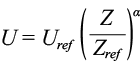 (1)where U is wind speed at height z, Uref is the wind speed at reference height zref (usually taken as 10 m), and α is the power exponent.