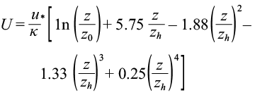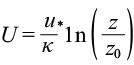 The logarithmic law, derived by the Monin-Obukhov Similarity Theory or Mixing-Length Theory, is widely accepted by the micrometeorology community. It is given as: