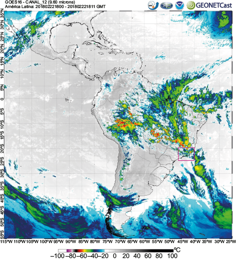 The lapse-rate (LR) represents temperature variation for an atmospheric layer. Typically, the layer between 700 hPa and 500 hPa is also a measurement of CAPE “width” (Nascimento, 2005), which we will adopt in this study. The K index represents the sum of air and dew point temperatures measured at 850 hPa subtracted from air depression at 700 hPa and air temperature at 500 hPa (George, 1960). The Total Totals index (TT) is quite similar to the K index, with the main difference being that air depression at 700 hPa is not considered in the calculation of TT (Miller, 1972). If the atmosphere is vertically warm and wet, K and TT present similar behavior. In contrast, in case a dry layer is present at 700 hPa, TT is not affected and can better represent atmospheric instability (Silva Dias, 1987; Henry, 1999; Nascimento, 2005). Precipitable water (PW) represents the available rain water if all water vapor integrated over an atmospheric column (this study integrated from surface to 100 hPa) precipitated (Silva et al.,2018).