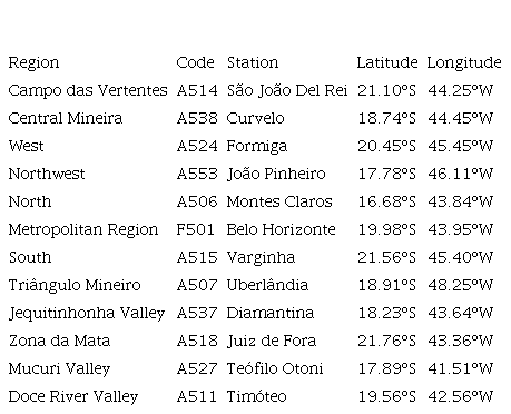 This research was carried out with the support of the Institute of Natural Resources of the Federal University of Itajubá and financed by the Coordination for the Improvement of Higher Education Personnel (Capes) - Financing Code 001. The authors would like to thank the National Oceanic and Atmospheric Administration (NOAA) for the availability of the Global Forecast System (GFS) model and the INMET for providing the station data used. The third author also thanks CNPq and FAPEMIG for financial support.