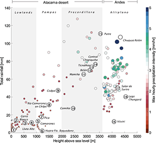 Although the western Altiplano is a semiarid region (~200 mm/year that mostly falls during the summer rainy season as seen in Fig. 2a), the Lowlands and Pampas are very dry and precipitation events are extremely infrequent.