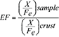 Enrichment Factors (EF) have been used since the 70's to discriminate between oceanic, terrestrial, and potentially other elemental sources in the atmosphere of remote regions (Ediagbonya 2016). Considering that the existing variation in the concentration of a given element on the environment is due to its natural lithological composition, the presence of it in quantities greater than its concentration in the crust suggests the influence of anthropogenic activities. Therefore, the EFs are calculated by normalizing the values found in the atmosphere to a conservative element (regularly Al and Fe for metals and Ca for larger ions), which is one that will be influenced almost exclusively by sources from the crust (Cable and Deng, 2018).
