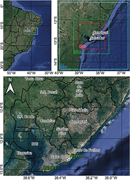 Salvador city, the capital of the state of Bahia, Brazil, experiences the highest number of natural disasters associated with intense rain on the coast of the northeast region of the country, and rainfall is mostly concentrated between April and July (Rao et al., 1993). The occurrence of intense rain is very rare outside this period. However, the Guará cyclone/subtropical storm occurred on December 9, 2017, originating from a strong decrease in atmospheric pressure between the coast of southern Bahia and northern Espírito Santo state. The cyclone caused strong winds that devastated several areas of the city, and waves of up to 5 m, according to the Brazilian Navy. Therefore, to analyze this event in the metropolitan region of Salvador (MRS), 63 runs using different combinations of seven microphysics (MP), three cumulus (CU), and three planetary boundary layer (PBL) schemes with a very fine resolution (1 km) were conducted to elucidate the most suitable physical parameterization scheme for this extreme rainfall event over an urban-coastal area. This extreme rainfall event was selected since it can be difficult for the model to depict such abrupt changes in atmospheric behavior (Surussavadee, 2017). Therefore, this case study was conducted to evaluate parameterizations in a coastal region during extreme rainfall by comparing the modeled results with data obtained at meteorological stations. Few studies have evaluated the parameterizations used in the WRF model under extreme rainfall conditions over coastal regions, even though the coastal zone of Brazil extends for over 8500 km.
