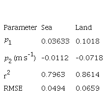 From Figure 2 it can be inferred that for S1, S3 and S4 (and probably S5) there are two wind regimes due to the sea breeze (direction-dependence). For S1, two straight lines fit data coming from the sea (small slope) and from land (this is very clear in S1). One possibility to estimate the friction velocity would be to perform a linear fit in terms of the streamwise mean wind speed U for each regime, as suggested by Weber (1999), using the corresponding range of directions to identify the different wind regimes when necessary. This procedure works very well, with the inconvenience of having different fit constants for each location and regime (one for winds coming from land and other set of constants for winds coming from the sea, for example). The corresponding values for the linear fit parameters of this exercise for S1 are shown in Table II. Even if the wind coming from the sea may present different behavior depending on the sea state (Charnock, 1955; Wu, 1980; Yahaya and Frangi, 2009), the fit is excellent (r2 > 0.79); however, other locations not so close to the coast would be influenced by the terrain between the coast and the measurement site. Even in S1 the distinction between wind from the sea and from land is not sharp for wind directions aligned (±10º) with the shoreline. The data encompasses all atmospheric stabilities, however this calibration would have to be done separately for every location using the wind direction (and a 3D anemometer, for at least one year). Note also that for some sites, such as for S3 and S5, the spread of the data makes very difficult to set a clear-cut criterion for the regime identification, so the method would not be applicable. A method that is insensitive to these wind regimes would be very desirable. The use of the variance instead of the wind speed is intended to achieve regime (and stability) insensitivity, as discussed in the next sections.