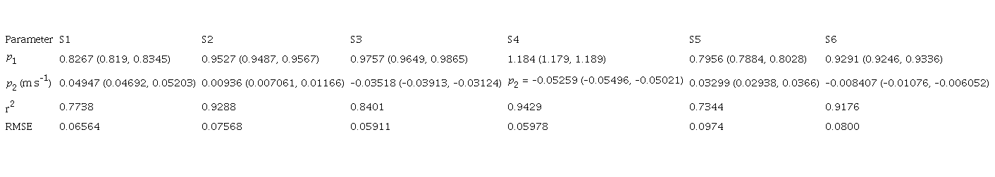 Table III lists the fit coefficients and goodness of fit of the data in Figure 3 (u* as a function of u*2D). The method works best at S2 and S4, as expected, since these sites do not have dissimilar wind regimes and the terrain and canopy are homogeneous. Interestingly, for S3 the goodness of fit is similar to that of S1.