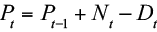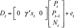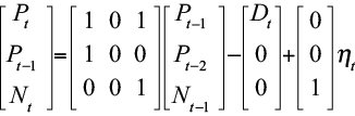 (4)Since the at-risk population Pt and the new entrants Nt are unobserved, the parameter of this dynamic model cannot be estimated by means of conventional methods. However, the unobserved components can be estimated by using the state-space technique. Casting the model in this form, makes it possible to use the Kalman filter for parameter estimation. The representation considers Eq. (2) as a measurement equation, that is: