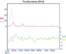 At the boundaries, the flux of AZ has the smallest order of magnitude, related to minimum horizontal variations of temperature in the equatorial region (Fig. 13).