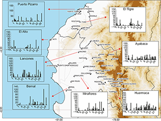 To show the behavior of the early 2017 rain in the Peruvian western north, we selected eight stations of the National Service of Meteorology and Hydrology (SENAMHI) network distributed in Tumbes and Piura (Figs. 1 and 2).
