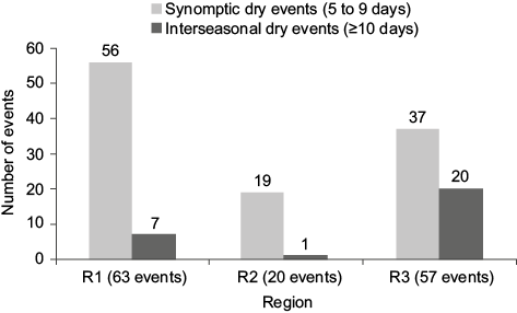 Keywords: synoptic dry events, intraseasonal dry events, rainfall season.