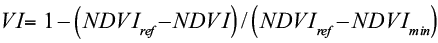 (1)Estimation of daily ET was then done by multiplying the PET layer obtained from the Turc calculation (step 2) and the Vegetation Index (VI) layer (step 4), which replaces the standard crop coefficient in agricultural ET estimations in order to represent natural vegetation types (Glenn et al., 2011).