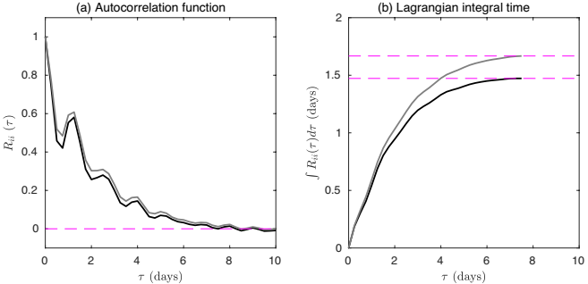 Then, the ‘memory’ of the drifter is calculated with the Lagrangian autocovariance function defined as (Provenzale, 1999)