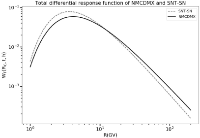 From Figure 16 it may be appreciated that the Rigidity Response for both monitors are very similar. Mean responses were computed, for SNT-SN is about 23.7 GV and for NMCDMX is about 24.5 GV.