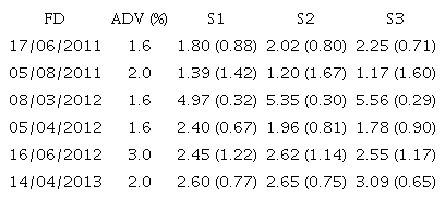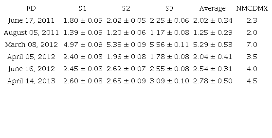 The uncertainty numbers expressed in the column ‘Average’ include the standard deviation of the FD values recorded in channels S1, S2 and S3 of charged registers, and the margin of uncertainty from the values for every channel, for each event. From the calculations shown in Table 8 it can be seen that for all the events chosen in this study, the estimated depths of the FDs by the SNT-SN are smaller than those registered by the NMCDMX (Musalém, 2015). As shown in Table 7, the March 08, 2012 is the only event for which the