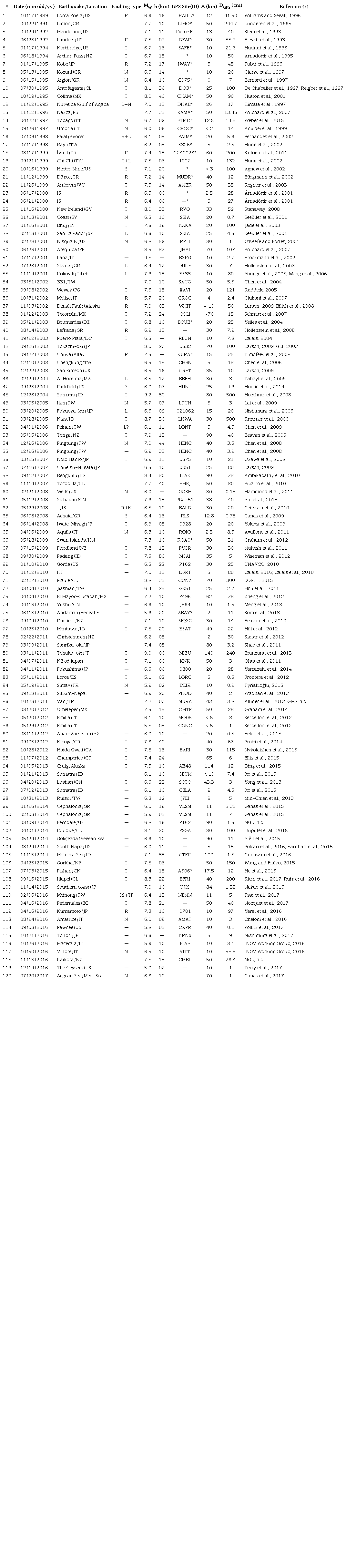 Appendix 1: List of 120 interplate worldwide earthquakes measured by near-field GPS stations.