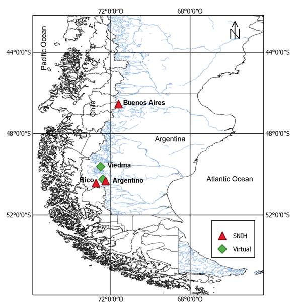 In this work, three stations with in situ water level measurements and daily time resolution were selected. These stations are located at the Argentino, Rico and Buenos Aires lakes (Figure 2), and their characteristics are shown in Table I.