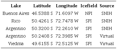 Patagonian lakes in Argentina and Chile, were also used in order to compare the