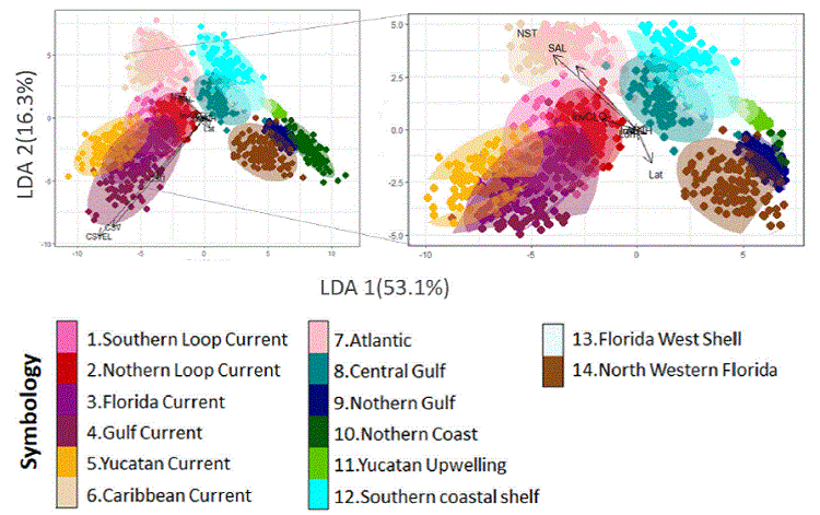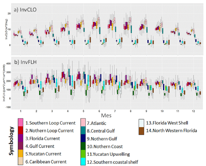 Existen varios esfuerzos de regionalización del GoM especialmente enfocados en aspectos particulares, ya sea en la parte biológica (Salmerón-García et al., 2010), delimitación de hábitats (Yáñez-Arancibia y Day, 2004), por procesos físicos (Zavala-Hidalgo y Fernández-Eguiarte, 2006 y Miron et al., 2017) o bien por la respuesta espectral en imágenes satelitales (Callejas-Jiménez et al., 2012). Estos trabajos tienen coincidencias espaciales y de interpretación, pero ninguno había expresado la dinámica anual integrando las distintas propiedades oceanográficas de este ecosistema.