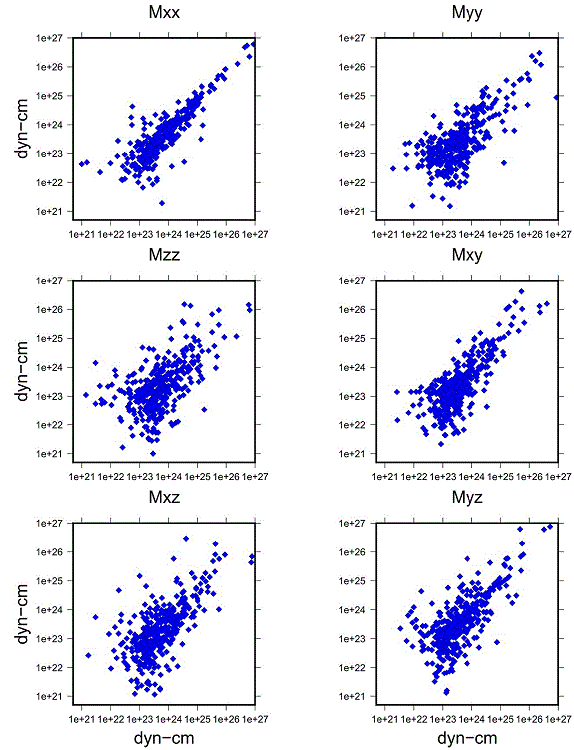 A comparison between the six independent components of the elements of the moment tensor was also carried out, and the corresponding figure can be found in the Appendix (S-2).