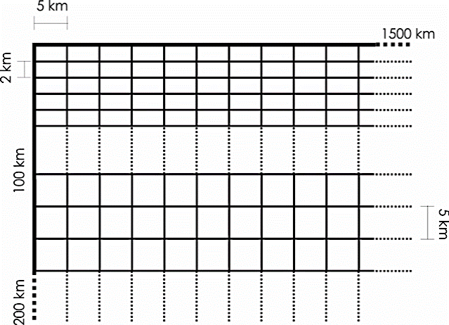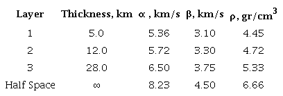 The Green's functions were precomputed for each event-station combination in a discrete mesh using the frequency wavenumber method (Saikia, 1994), assuming a layered half space model without lateral velocity variations (Fukuyama et aL, 1999). are calculated every 5 km for a horizontal mesh from a distance of 5 to 1500 km. In depth direction, the mesh spacing is 2 km in a range of 2 to100 km; for deeper locations, the mesh spacing is every 5 km until 200 km depth (see Figure 2 for a sketch). Velocity model proposed by Campillo, et al. (1996) (Table 1) is used in computing.