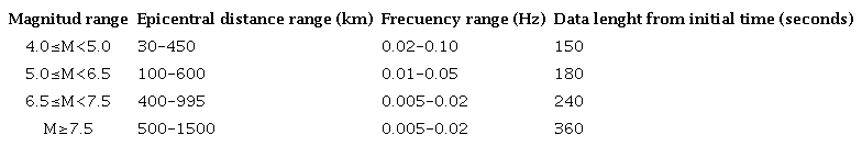 The method used in this work was proposed by Fukuyama et al (1999) and adapted to the SSN database by Franco et al (2002) and Iglesias et al (2008). As described later, the algorithm requires a minimum data record length. The algorithm searches the segment containing the record of the earthquake in 1-day mseed file or in the segment stored in the case of the early years.