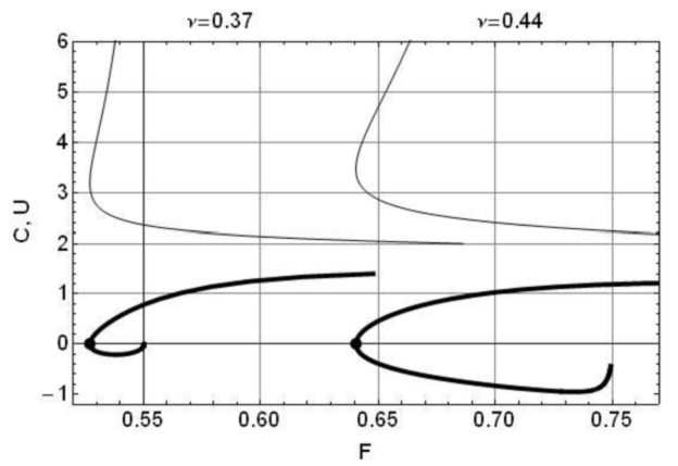 with dimensionless phase velocity C and dimensionless frequency F, which are defined depending on the model under consideration. Already Lamb (1904) has pointed out that it is possible for the group velocity to be of opposite sign with respect to phase velocity. He discusses the solution of the wave equation in the presence of a source of energy and points out that wave groups always propagate away from the source, while the complete wave train is actually a superposition of harmonic waves with negative phase velocity. Having a look on formula (1) U(F) and C are of opposite sign only for anomalous dispersion, i. e.