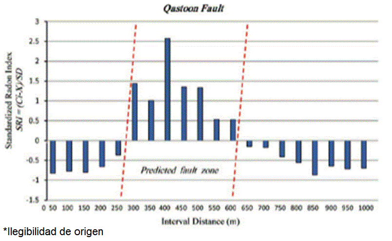 Resumen: El objetivo principal del presente estudio es evaluar el papel de la tectónica activa en el nivel de emanación de radón del suelo en dos estructuras tectónicamente activas de la Falla del Mar Muerto del Norte (NDSF, por sus siglas en inglés, al noroeste de Siria, es decir, los segmentos de falla Qastoon y Al-Harif. Las mediciones de radón se basaro básicamente en los resultados extraídos de estudios arqueosísmicos y paleosísmicos anteriores en Al-Harif, además del estudio geofísico y morfotectónico integrado en el sitio de Qastoon. Se realizaron un total de 80 mediciones de gas radón en el suelo, a una profundidad de muestreo de 75 cm; se utilizó el detector de radón AlphaGUARD PQ 2000Pro. El rango de fondo de la emisión normal de radón del suelo local se determinó en un área ubicada lejos de la influencia de las perturbaciones tectónicas. Los datos de radón obtenidos se analizaron estadísticamente y los valores medios se estandarizaron en términos de probabilidad de magnitud, lo ciual mejora el proceso de comparación y facilita la separación de las variaciones normales del radón de otros valores anómalos o relacionados con la geotectónica. Los resultados generales revelaron ocurrencias notables de anomalías de radón asociadas con fallas con valores pico máximos de ~6 a 7 veces por encima del fondo, con una tendencia de acuerdo con los rastros previstos de rupturas de fallas en Qastoon y Al-Harif, respectivamente.