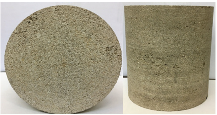 The Bedford limestone samples employed in this study (see Fig. 1) were characterized by X-ray diffraction analysis (XDR), X-ray micro-tomography and geomechanical testing. Their composition is 97 %w calcium carbonate and 3 %w silicon oxide. They have an average effective porosity of 13.8 %, a pore throat size in the range of 40-52 µm, very irregular grain shapes with grain density of 2,711 kg/m3, a drained Young modulus (E ) of 16.1 GPa, and a drained Poisson ratio (ν) of 0.15 (Coronado, 2019).