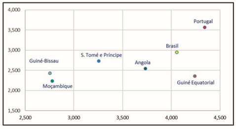 Primeiro, a distância económica, com diferentes âmbitos, continua a verificar-se e a medir-se por aproximações centradas no PIB e no PIB per capita, onde entre a realidade de Portugal, Brasil e outros países lusófonos se verifica um gap, percecionando-se que as curvas de valor dos mercados são diferentes. Dos 22 mil dólares de PIB per capita de Portugal até aos 567 euros da Guiné-Bissau há uma diferença que permite perceber padrões de consumo diferentes, diferentes estruturas de mercados, de canais de distribuição, entre outros aspetos (Banco Mundial, 2014).
