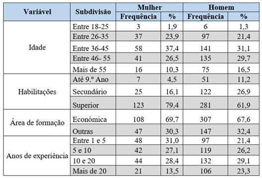 O estudo verificou que a mulher gestora é mais jovem e com mais habilitações (p < 0,05) - 63,2% tem menos de 45 anos e 79,4% detêm um curso superior. No caso dos gestores masculinos 53,7% têm até 45 anos e 61,9% têm formação superior. Em termos de experiência, 52,4% dos homens gerem empresas há mais de 10 anos, por oposição aos 41,9% das mulheres para o mesmo período (p < 0,05).