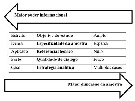 As questões colocadas por Malterud et al. (2016) ajudam a aumentar a transparência do processo de definição da amostra e apresentam argumentos genuinamente explicativos. N deve ser suficientemente grande e diverso para responder aos objetivos do estudo. O que significa, como se discutirá, que pode ser igual a 1 em alguns estudos - especialmente quando o poder informacional é forte. Poder informacional significa que, quanto maior a quantidade de informação relevante detida pelos informadores, menor é a quantidade de informadores/participantes necessária (ver Figura 1).