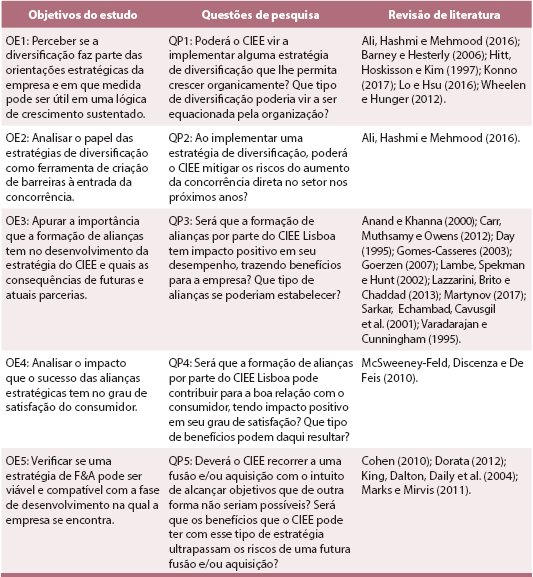 Por fim, assim como no caso das alianças estratégicas, também as F&A devem ter como objetivo último a satisfação do cliente/consumidor. Como fruto da combinação de empresas, há vários casos em que os choques culturais e as disrupções internas levam à queda dramática do grau de satisfação dos clientes e funcionários, o que se traduz em consequências severas nos níveis de produtividade (EPSTEIN, 2004). Posto isso, torna-se vital que os gestores estejam atentos a esses fenômenos e aprendam a contornar os obstáculos que surgem durante os processos de F&A, de maneira a evitar erros futuros (FANG, JIN, SUN et al., 2015). No Quadro 1, é possível analisar a relação entre os objetivos do estudo, as questões de pesquisa que motivam este artigo e a respetiva revisão de literatura.