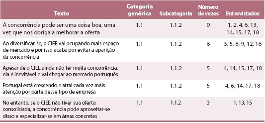 Paralelamente, no que diz respeito à criação de barreiras à entrada da concorrência por intermédio do uso de estratégias de diversificação, foi possível confirmar os estudos de Ali, Hashmi e Mehmood (2016), uma vez que larga fatia dos entrevistados concorda que, nesses moldes, o CIEE poderá alcançar elevada superioridade financeira, oferecendo produtos e serviços a preços mais competitivos, cuja concorrência terá dificuldade em acompanhar. No entanto, é ainda importante referir que muitos dos entrevistados apontam a concorrência como algo inevitável e até positivo para o negócio, na medida em que esse cenário leva à busca constante da melhoria da oferta.