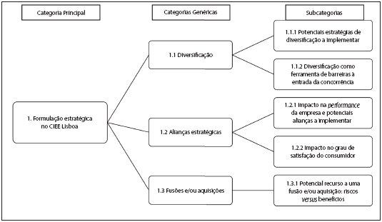 Esta investigação teve por base um conjunto de fontes primárias, a partir da realização de 18 entrevistas semiestruturadas com perguntas abertas a colaboradores do CIEE Lisboa, que posteriormente foram submetidas a uma extensa análise de conteúdo, de forma a obter dados analíticos e gerar conclusões teóricas e empíricas. Na Figura 1, encontram-se detalhadas a categorização e a codificação do corpus da entrevista que deu origem à análise qualitativa.