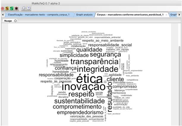A análise de conteúdo foi utilizada como primeira aproximação aos textos, servindo para uma primeira descrição do corpus e comparações iniciais com Bourne, Jenkins e Parry (2017). Como elemento auxiliar para essa etapa e construção das categorias de análise, foi utilizado o software Iramuteq.1 Os autores recorreram ao Guia Exame de Melhores e Maiores 2017 para identificar as 500 maiores empresas do país, que constituiu o universo de pesquisa. Eles utilizaram a lista da Fortune 500, para as empresas norte-americanas, e da Financial Times Stock Exchange (FTSE List), para as britânicas. Trabalharam, portanto, com um corpus de 3.112 valores em 554 organizações. A presente pesquisa trabalhou com 1.760 valores em 311 organizações - aquelas em que foram encontradas DVs. A opção de trabalhar com as 500 maiores também se justifica pelo fato de não terem sido identificados estudos do gênero na literatura nacional, sendo positiva a apresentação de um estudo com caráter exploratório.
