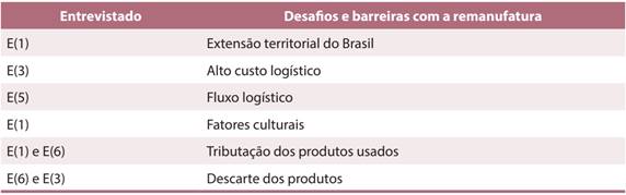 Além da logística reversa, outra barreira na remanufatura está na aceitação de produtos remanufaturados. Sobre esse ponto, o entrevistado (E1) registra a forte influência que o fator cultural exerce na compra desse tipo de produto no país: