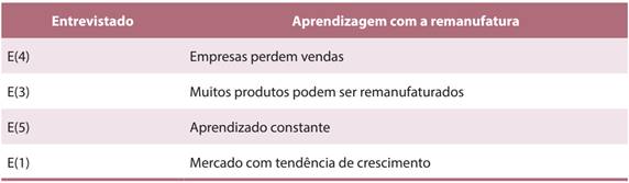 No Quadro 4 consta um resumo das aprendizagens com a remanufatura na percepção dos envolvidos com a atividade.
