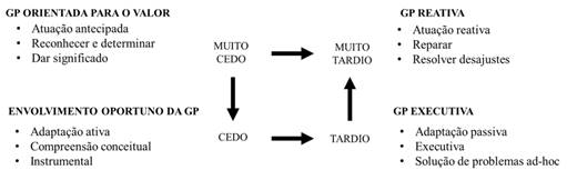 Ao assumir que o processo de tomada de decisão começa com a observação de uma lacuna entre a situação real e uma situação desejada, o envolvimento da unidade de GP pode ser descrito como muito antecipada, caso a área esteja envolvida no primeiro momento do processo de tomada de decisão, de forma que é possível reconhecer e determinar problemas. O segundo momento, descrito como antecipado, é caracterizado por um envolvimento oportuno da GP no processo decisório e se refere ao momento em que a unidade está ativamente envolvida no processo de tomada de decisões, criando instrumentos e apoiando os gerentes de linha responsáveis pela implementação. Já no terceiro momento, o envolvimento numa decisão é tardio e restringe-se à implementação de atividades de GP sem qualquer contribuição ativa da equipe. Por fim, o último momento de envolvimento da GP no processo decisório é chamado de muito tardio, tendo em vista que a unidade é consultada apenas para controle ou caso as soluções implementadas não funcionem conforme o esperado, sendo necessário alguma atuação para a solução do problema (BUYENS e DE VOS, 2001).