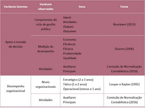 As variáveis consideradas para análise da influência da CG no apoio à tomada de decisão e no desempenho organizacional constam do Quadro 1.