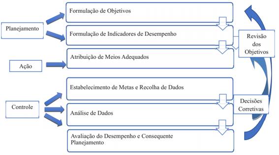 O processo de medição de desempenho procura otimizar a execução do que foi planejado, com a utilização de indicadores, de modo a se introduzirem medidas corretivas, ou se necessário, revisão dos objetivos definidos, conforme evidenciado na Figura 1.