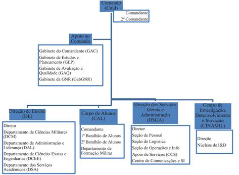 A estrutura organizacional da Academia Militar