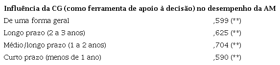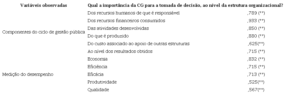 Os resultados permitem aceitar a H1, uma vez que a CG influencia positivamente a estrutura organizacional da AM, quer ao nível das componentes do ciclo de gestão pública (inputs, atividades, outputs e outcomes), quer ao nível das variáveis de medição do desempenho. Quanto à importância da CG para a tomada de decisão, ao nível da estrutura organizacional da AM, foram obtidos dados apresentados na Tabela 1.
