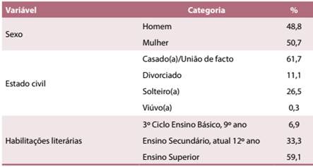 Com os resultados obtidos, foi possível fazer a categorização sociográfica dos trabalhadores no estudo (Quadro 1), em que se constatou que, dos 594 trabalhadores, 50,7% são mulheres e 48,8% são homens; quanto ao estado civil, verificou-se que, em sua maioria, são casados (61,7%) e possuem o nível superior de escolaridade (59,1%).