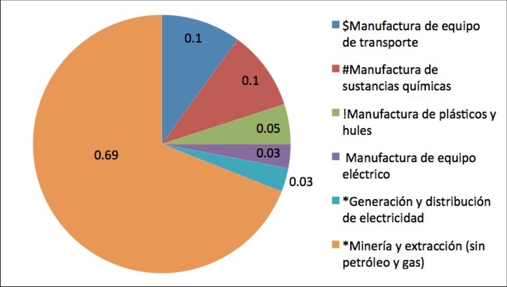 Del análisis realizado por la CCA resulta que son setecientas cuarenta y cinco plantas, distribuidas en seis sectores industriales, las que aportaron alrededor del 96% de los más de sesenta y cinco millones de kilogramos de emisiones y transferencias registradas en el RETC mexicano, y de estos sectores, la extracción de minerales metálicos aportó el 69% en 2005 (CCA, 2011), como se puede observar en la Figura 11.