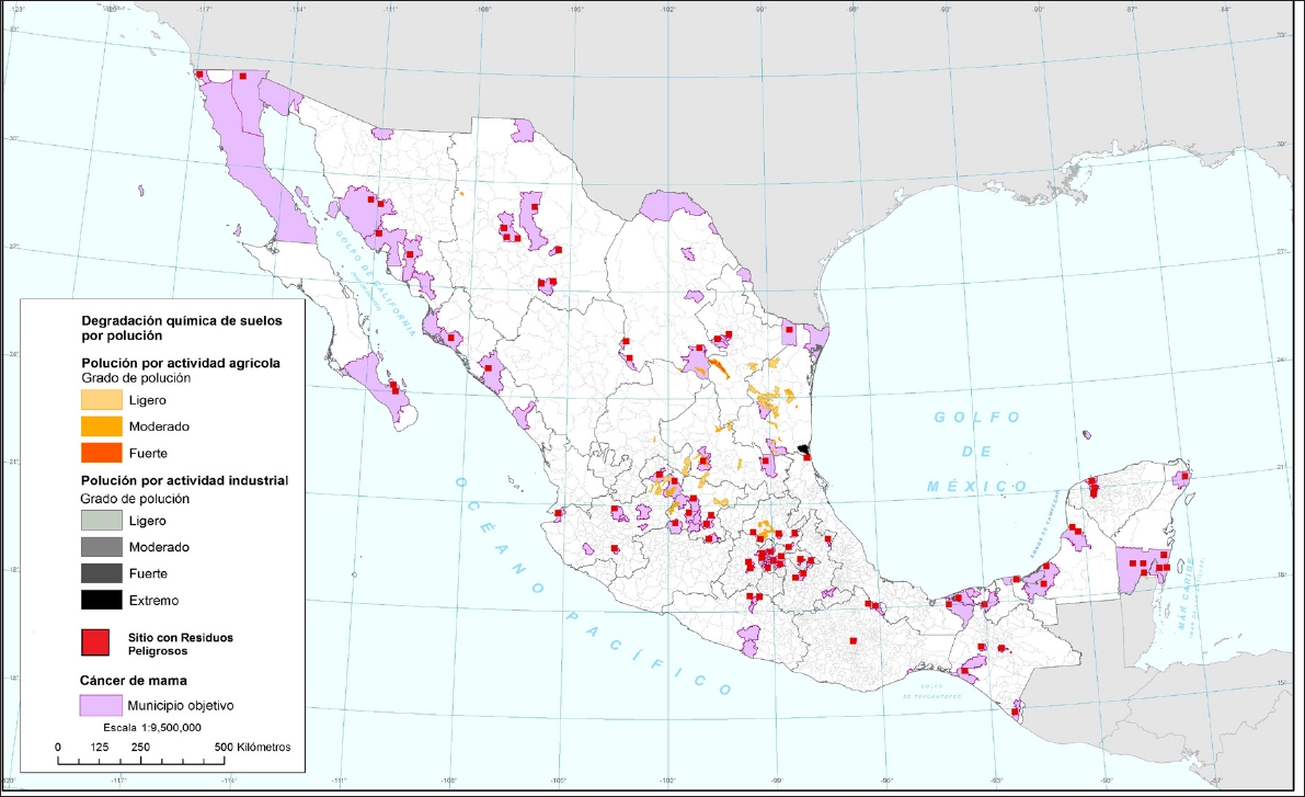 Palabras clave: cáncer de mama, contaminación ambiental, desechos tóxicos, análisis espacial, mortalidad, México.