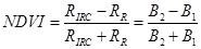 donde: RIRC y RR son, respectivamente, los valores de reflectancia bidireccional de la superficie para las bandas del infrarrojo cercano y rojo, que son las bandas B2 y B1 de la imagen (Tucker, 1979).